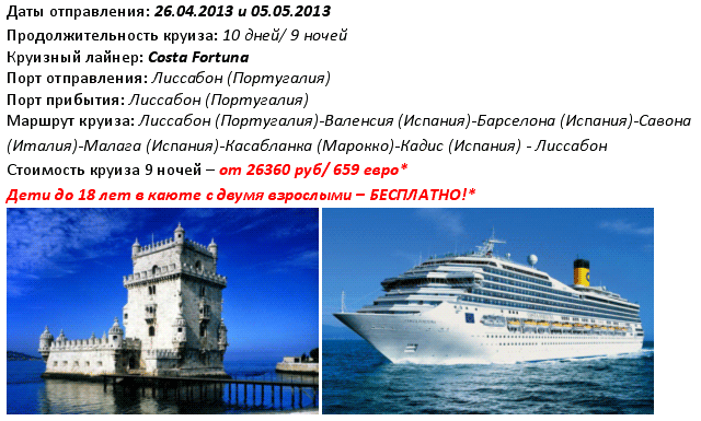 11 Янв 2013 17:05:26 ЕВРОПА - КРУИЗЫ из Лиссабона в апреле и мае от фирмы ФОРУМИНТ ПЛЮС