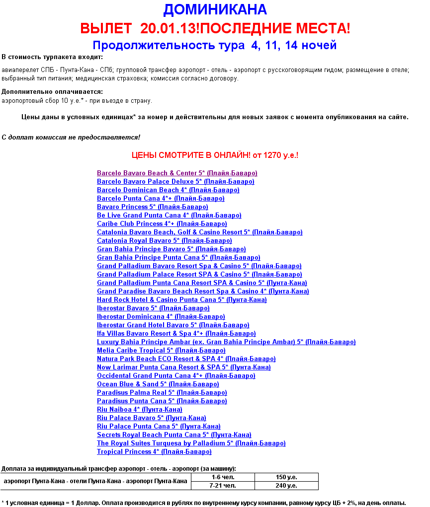 ДОМИНИКАНА - 20.01 от 1270 y.e. Последние Места от фирмы ЮЖНЫЙ КРЕСТ |