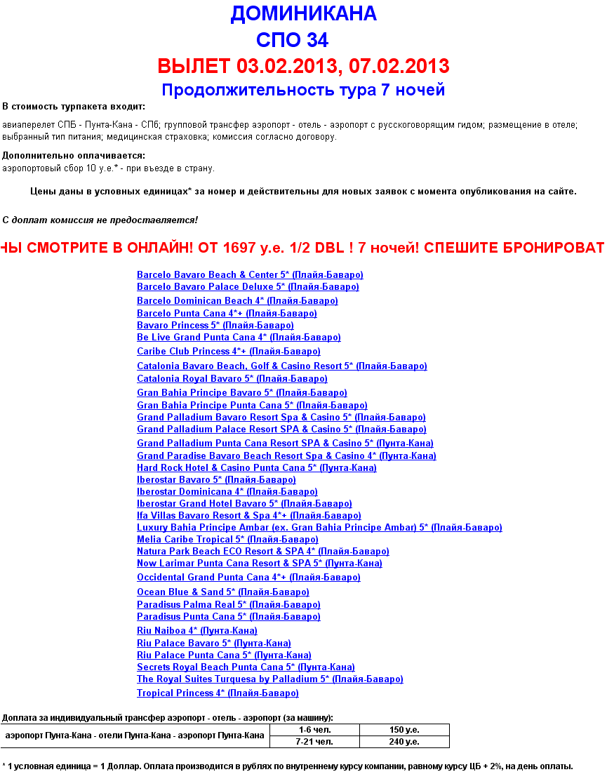 ДОМИНИКАНА 03.02 и 07.02 на 7 ночей от 1697 у.е. от фирмы ЮЖНЫЙ КРЕСТ |