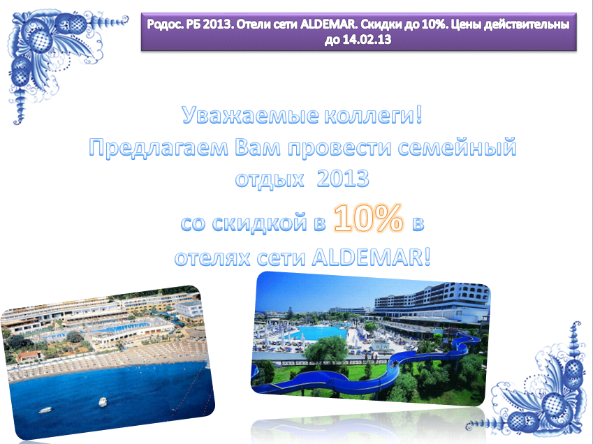 12 Фев 2013 10:56:18 ГРЕЦИЯ. РОДОС. Семейный отдых в отелях сети ALDEMAR со скидкой до 10% от фирмы СОЛВЕКС