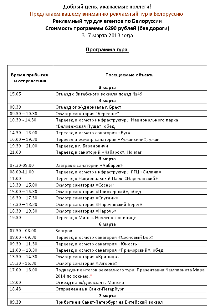 БЕЛОРУССИЯ 03.03-07.03 РЕКЛАМНЫЙ ТУР - Санатории + ЧМ 2014 по хоккею от фирмы СОЛВЕКС |