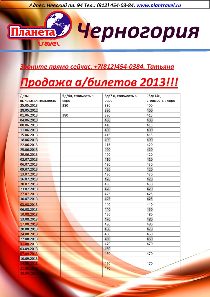 14 Фев 2013 17:00:50 ЧЕРНОГОРИЯ - АВИАБИЛЕТЫ - Лето 2013 от фирмы ПЛАНЕТА TRAVEL