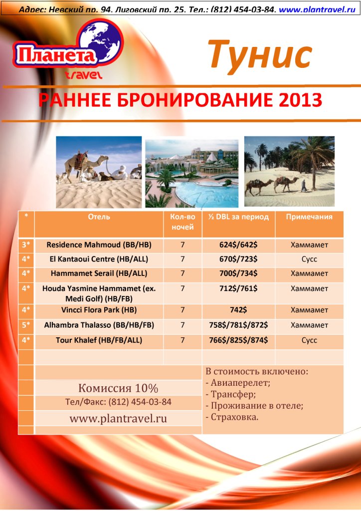 20 Фев 2013 10:49:54 ТУНИС. РАННЕЕ БРОНИРОВАНИЕ 2013 от фирмы ПЛАНЕТА TRAVEL