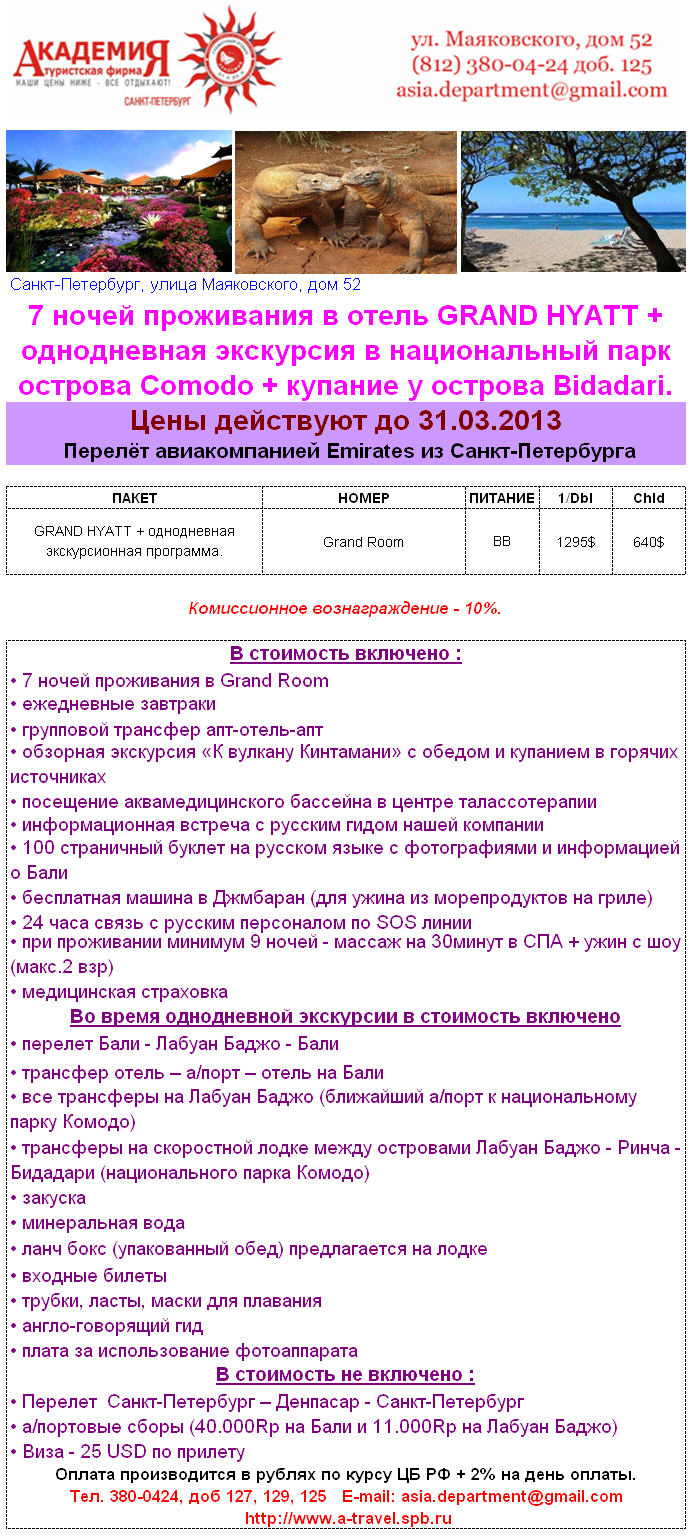25 Фев 2013 10:57:49 ИНДОНЕЗИЯ. СПО 7 ночей в отеле Grand Hyat + захватывающие экскурсии от фирмы АКАДЕМИЯ