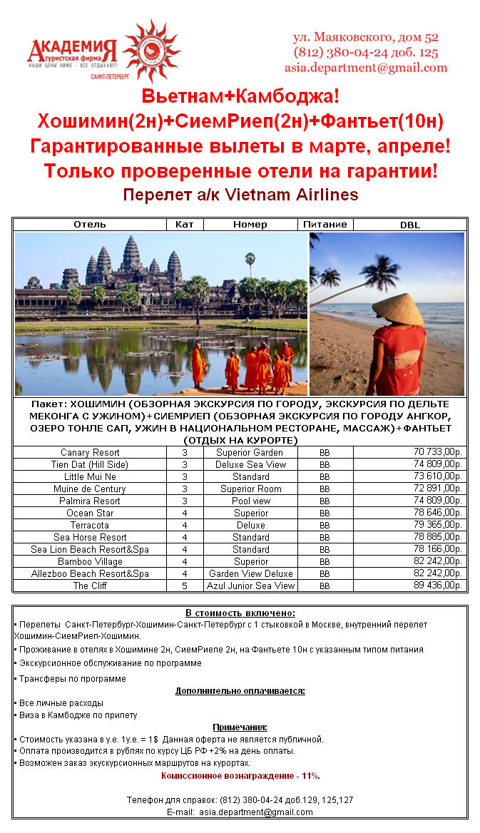 25 Фев 2013 13:32:43 ВЬЕТНАМ+КАМБОДЖА от 70т.р от фирмы АКАДЕМИЯ