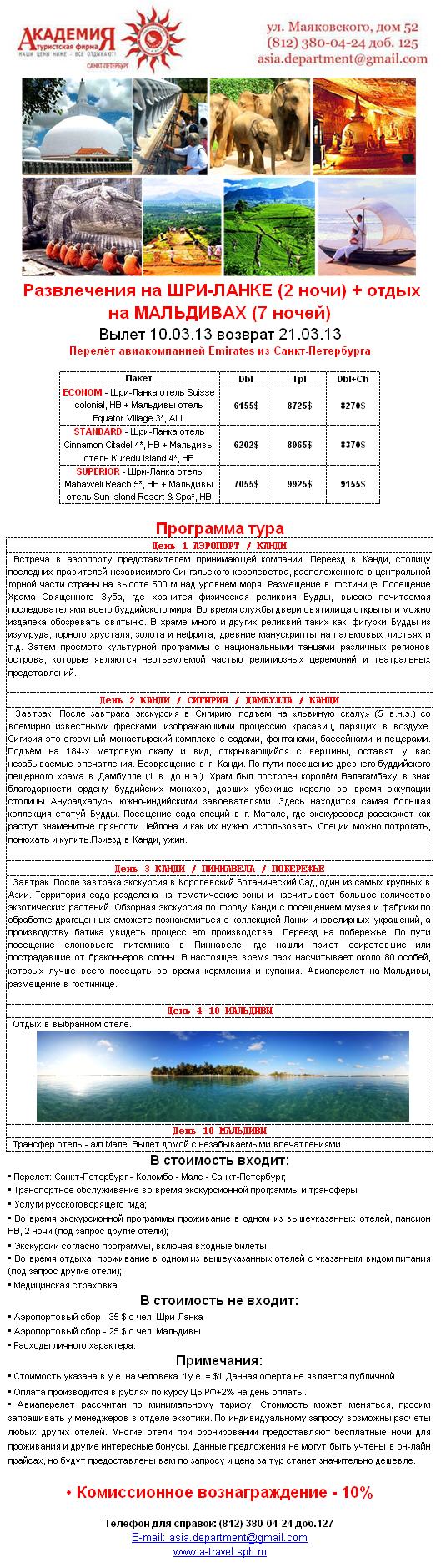 26 Фев 2013 12:01:10 ШРИ-ЛАНКА + Мальдивы. Увлекательные приключения + релакс от фирмы АКАДЕМИЯ