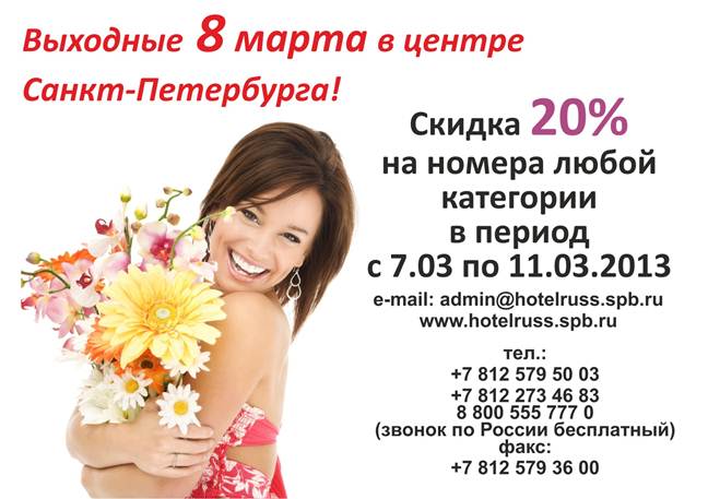 04 Мар 2013 15:01:41 РОССИЯ - СПБ - гост. РУСЬ: Выходные 8 марта в центре Санкт-Петербурга от фирмы ГОСТИНИЦА РУСЬ