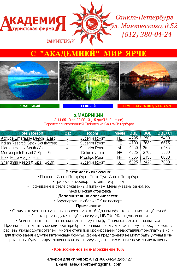 06 Мар 2013 12:26:36 МАВРИКИЙ лето 13 ночей от 2145 EUR 1/2 DBL Лучшие предложения от фирмы АКАДЕМИЯ