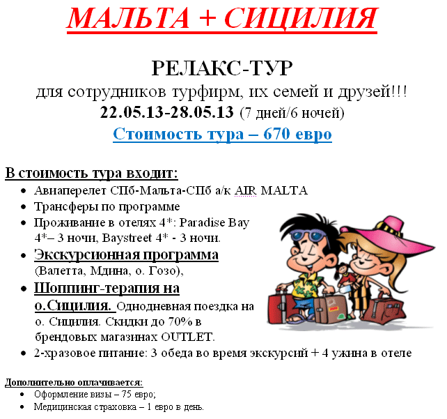 МАЛЬТА-ИТАЛИЯ Сицилия 22.05-28.05 Релакс-тур за 670 евро от фирмы ИВОЛГА
