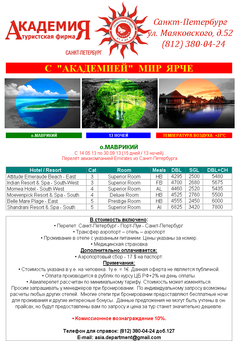 13 Мар 2013 11:41:38 МАВРИКИЙ лето - 13 ночей от 2145 EUR от фирмы АКАДЕМИЯ