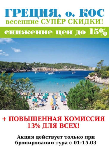 ГРЕЦИЯ. о. Кос. Скидки до 15%. Повышенная комиссия 13% от фирмы ВЕРСА |