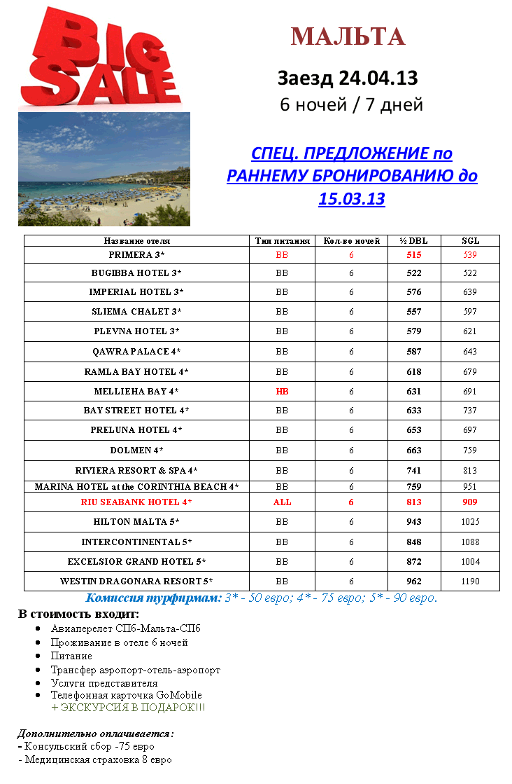 18 Мар 2013 13:32:43 МАЛЬТА 24.04 на 7дн/6н - раннее бронирование от фирмы ИВОЛГА