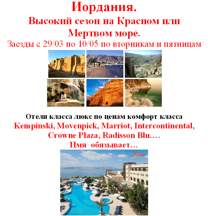 22 Мар 2013 15:37:22 ИОРДАНИЯ. 1/2 DBL от 700 $. Красное и Мертвое моря от фирмы СОЛВЕКС
