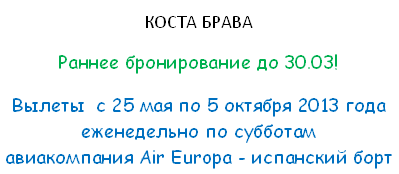 27 Мар 2013 14:20:35 ИСПАНИЯ Коста Брава с 25.05 по 05.10, раннее бронирование - Скидки от фирмы ИВОЛГА