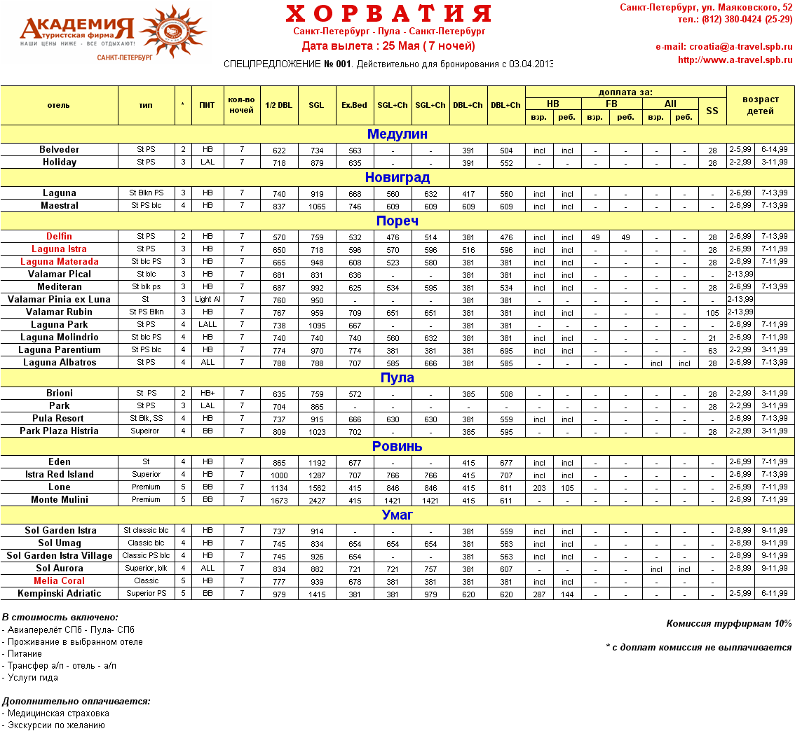 11 Апр 2013 15:14:04 ХОРВАТИЯ, Пула 25 мая 7 ночей от фирмы АКАДЕМИЯ