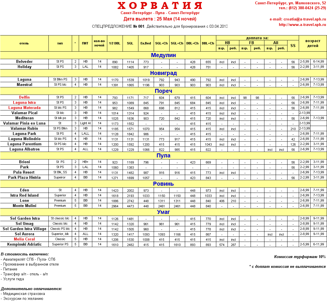 15 Апр 2013 12:23:30 ХОРВАТИЯ, Пула 25 мая 14 ночей от фирмы АКАДЕМИЯ