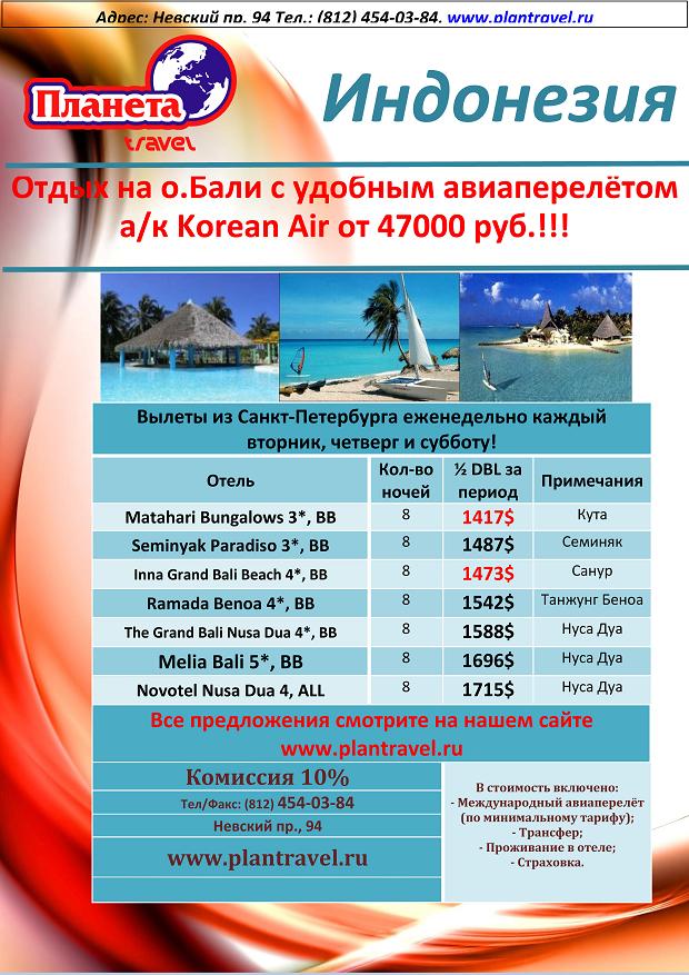 ИНДОНЕЗИЯ Отдых на о. Бали от 1417$ от фирмы ПЛАНЕТА TRAVEL |