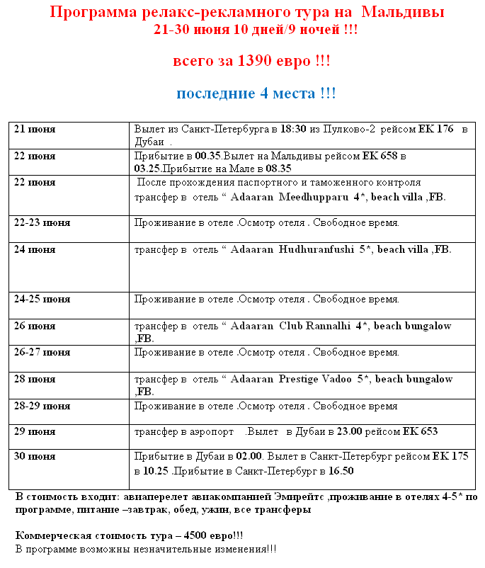 26 Апр 2013 14:47:25 МАЛЬДИВЫ 21.06-30.06 рекламный тур за 1390 евро от фирмы COMMODORE