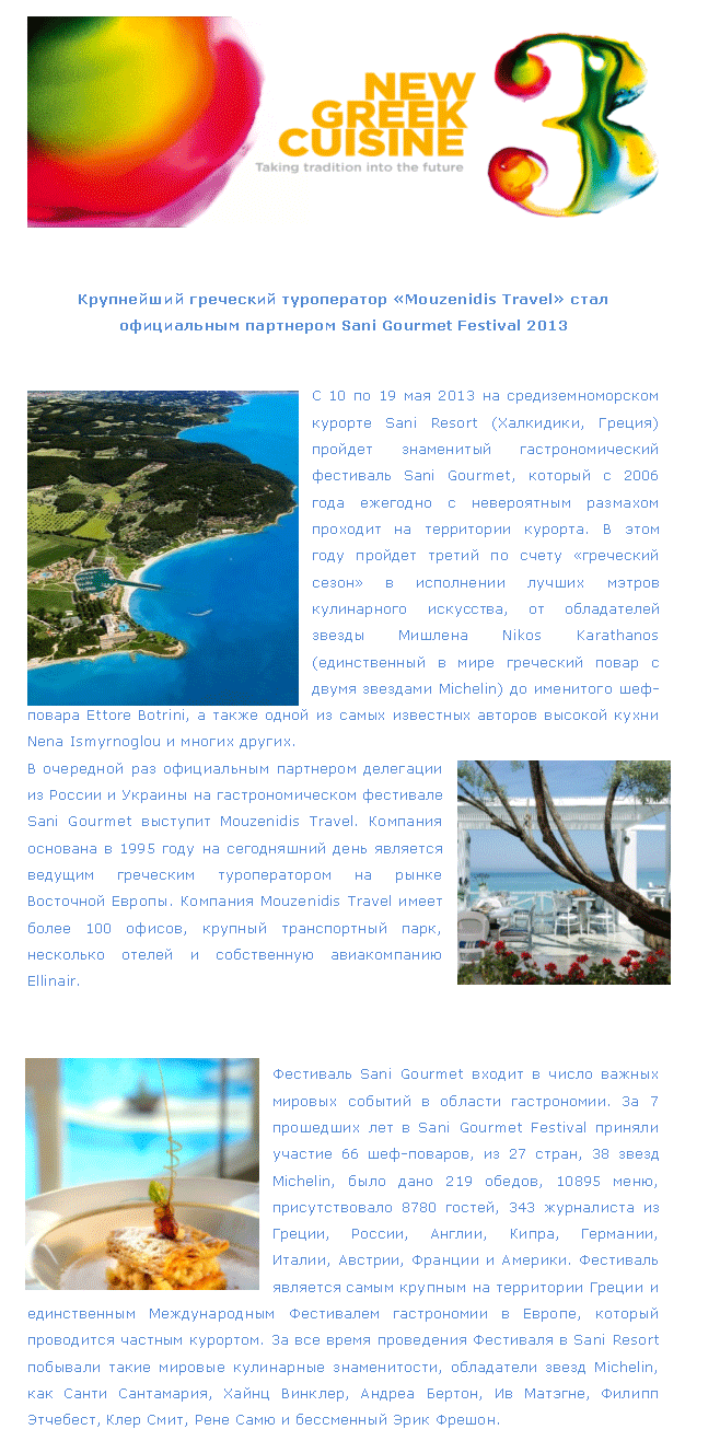 13 Май 2013 17:26:41 ГРЕЦИЯ - ХАЛКИДИКИ - Sani Gourmet Festival до 19.05 - от фирмы SANI RESORT