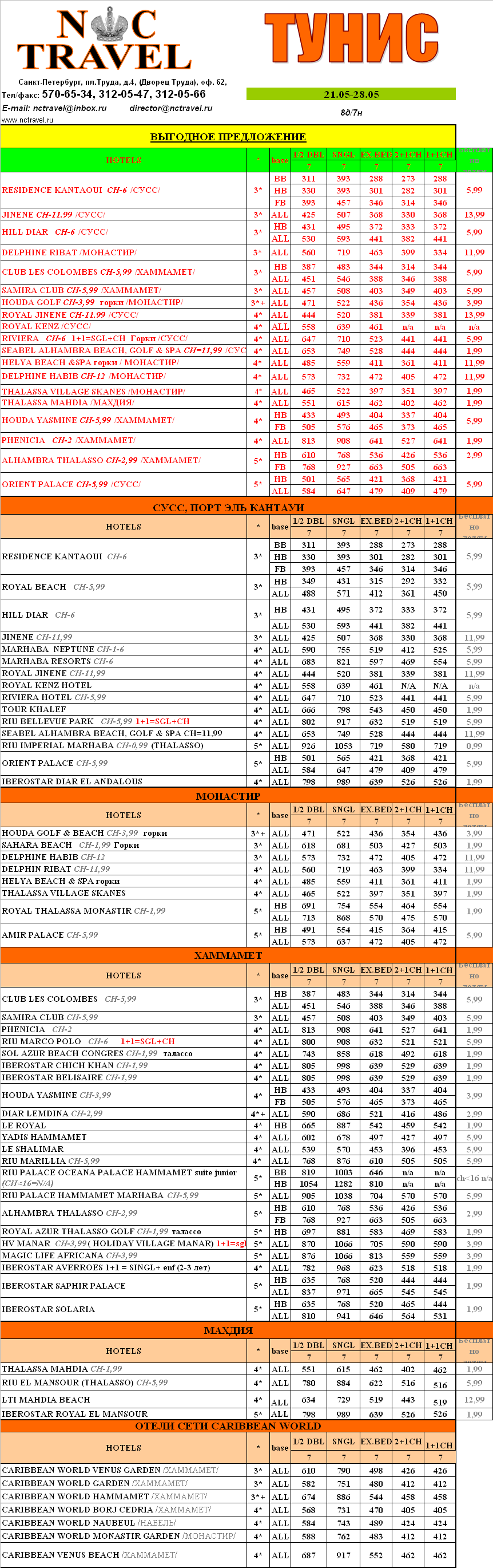 15 Май 2013 12:46:13 ТУНИС 21.05-28.05 от фирмы NC TRAVEL