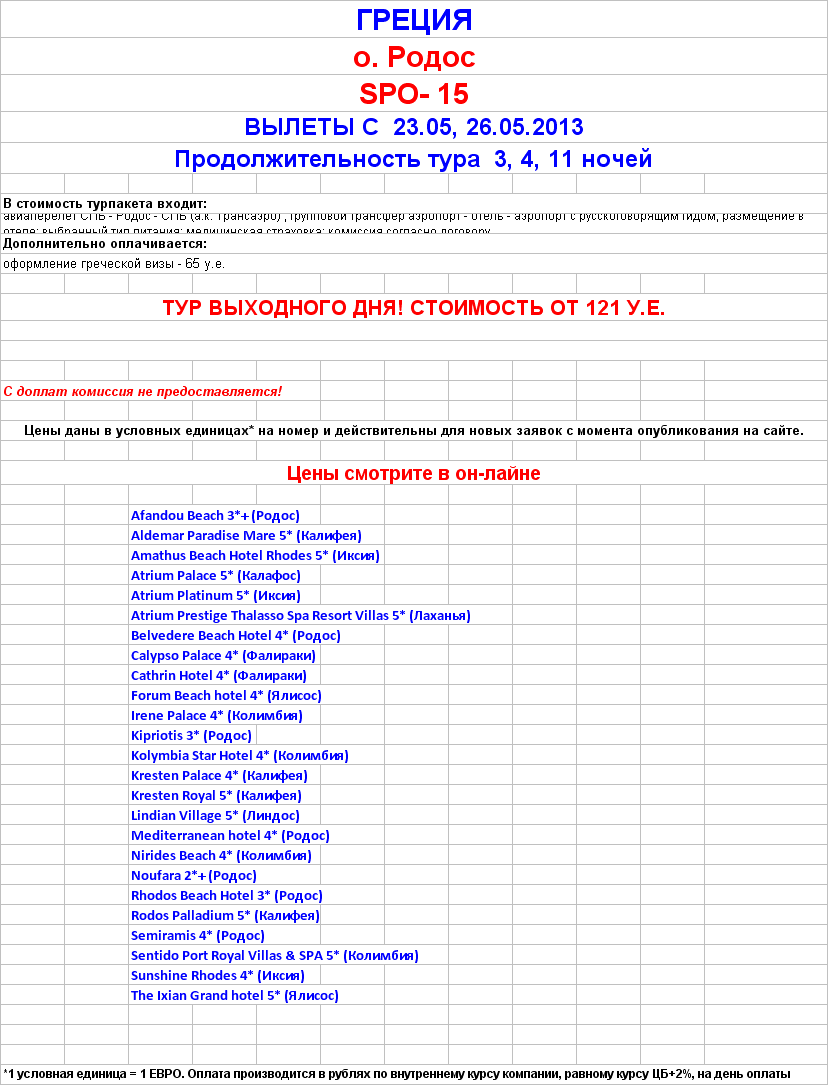 17 Май 2013 11:41:09 ГРЕЦИЯ. РОДОС с 23.05 и 26.05.13 от 121 У.Е. от фирмы ЮЖНЫЙ КРЕСТ