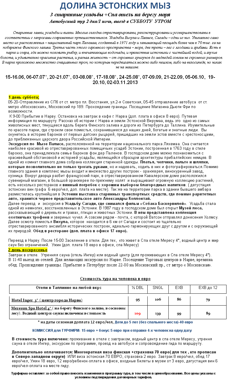 18 Май 2013 13:38:33 ЭСТОНИЯ "Долина эстонских мыз" 3 старинные усадьбы + СПА отель на берегу моря, 2д/1н по сб. от фирмы ПМП