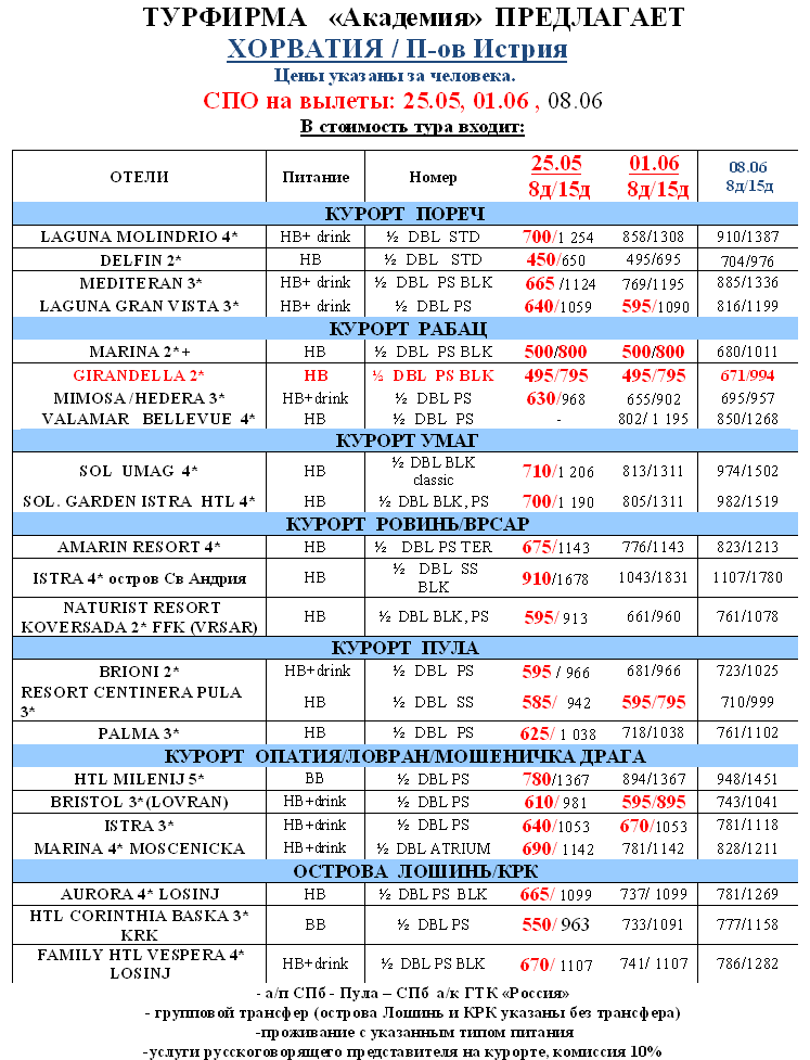 20 Май 2013 14:33:28 ХОРВАТИЯ, 25 мая, 01.06, 08.06, гарант. отели от 450 евро от фирмы АКАДЕМИЯ
