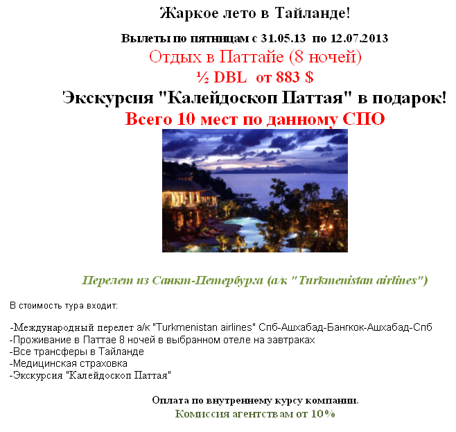29 Май 2013 16:49:44 ТАИЛАНД на 8н от 28 300 руб из СПб гарант. от фирмы ITM GROUP