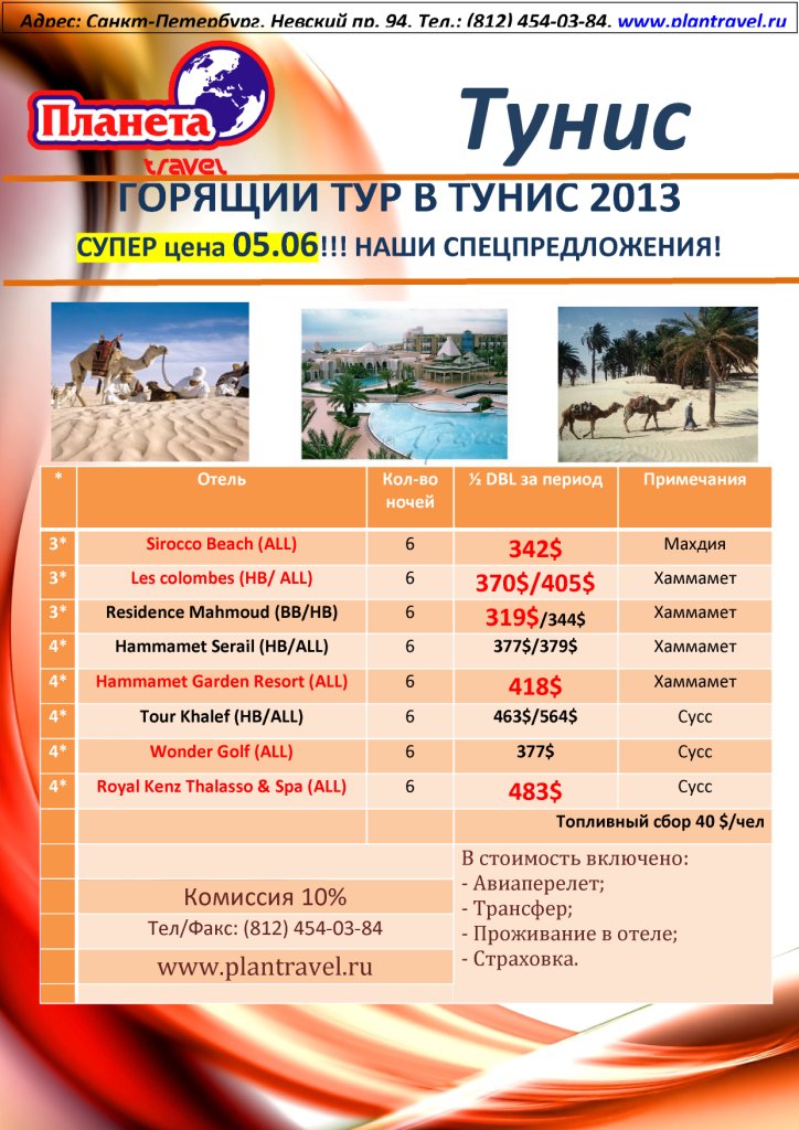 ТУНИС. СУПЕР ЦЕНА 05.06 СПО от фирмы ПЛАНЕТА TRAVEL
