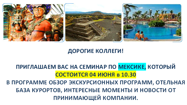 СЕМИНАР 04.06 МЕКСИКА - экурсии, отдых, интересные моменты и новости - от фирмы ПРАТА |