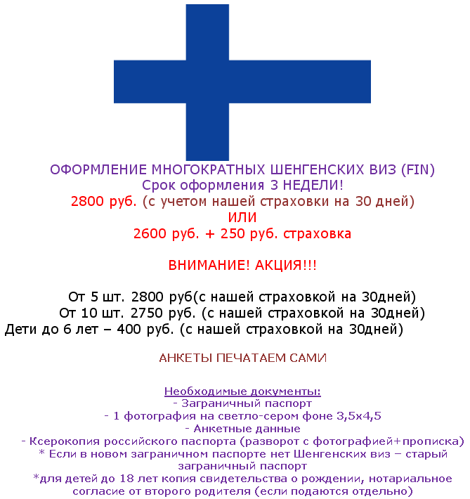 ОФОРМЛЕНИЕ FIN Мульти-Шенген Виз от 2600 руб + страховка - от фирмы ТВОЙ ТУР