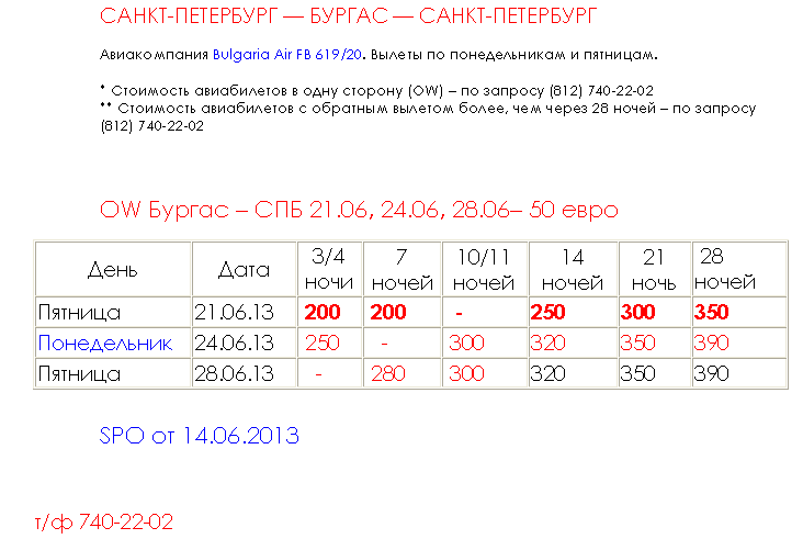 17 Июн 2013 10:22:41 БОЛГАРИЯ авиабилеты СПб-Бургас-СПб 21.06, 24.06, 28.06 (и OW) от фирмы БЮРО ПУТЕШЕСТВИЙ