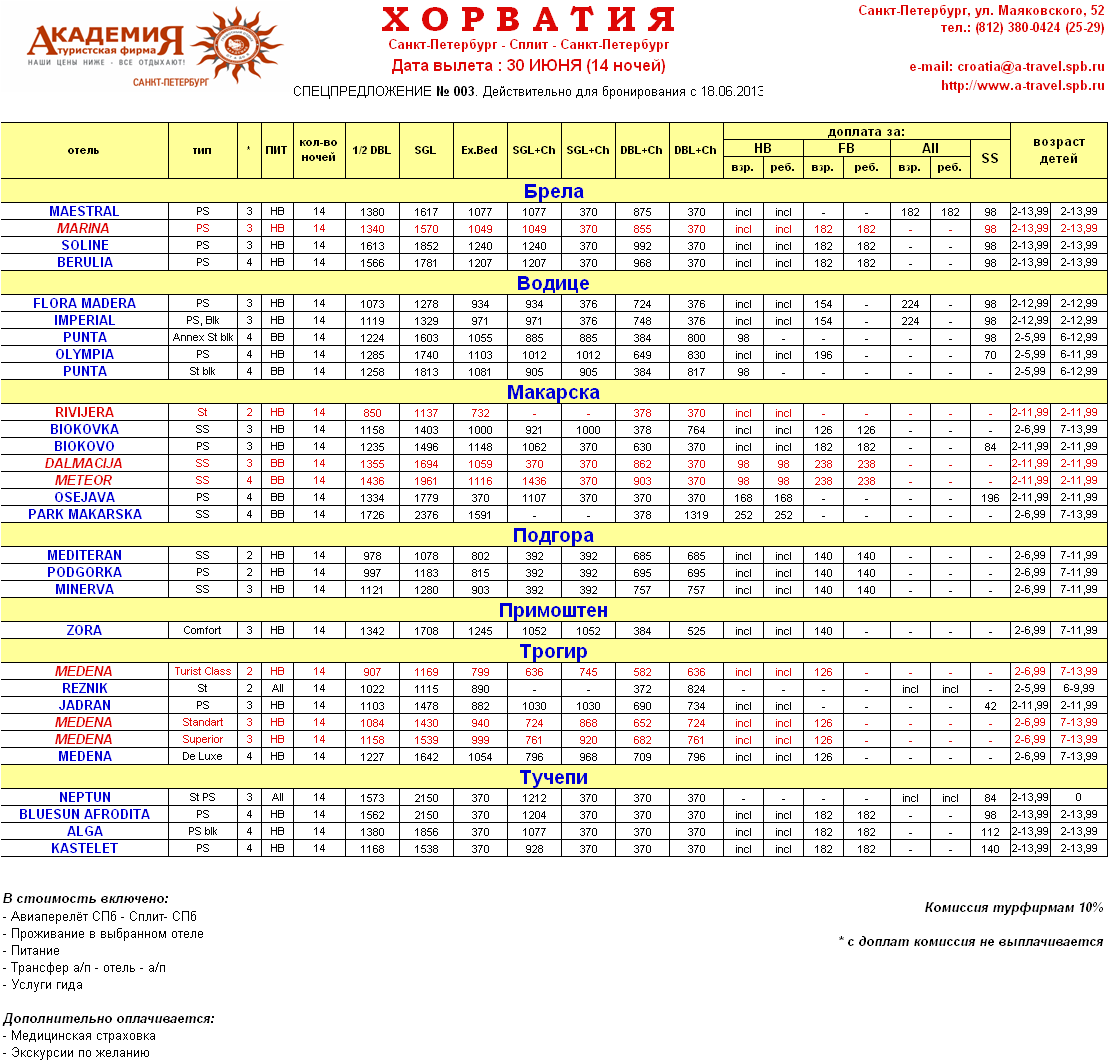 18 Июн 2013 12:21:41 ХОРВАТИЯ, Средняя Далмация 30.06 Гарант. номера от 850 евро от фирмы АКАДЕМИЯ