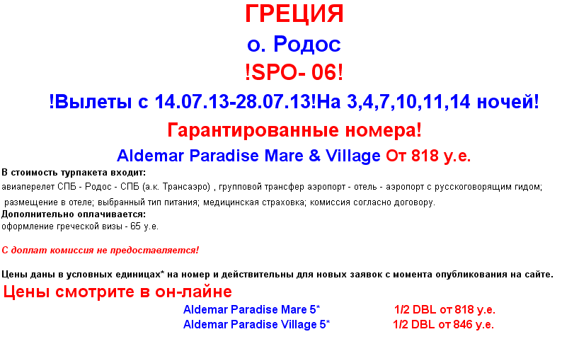 20 Июн 2013 12:41:36 ГРЕЦИЯ Родос - Aldemar Paradise Mare&Village в ИЮЛЕ от 818 y.e. , гарант. номера от фирмы ЮЖНЫЙ КРЕСТ