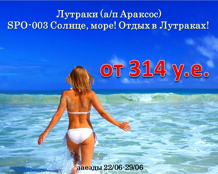21 Июн 2013 10:54:14 ГРЕЦИЯ Лутраки. (а/п Араксос) заезды 22/06-29/06 от 314 у.е. от фирмы СОЛВЕКС