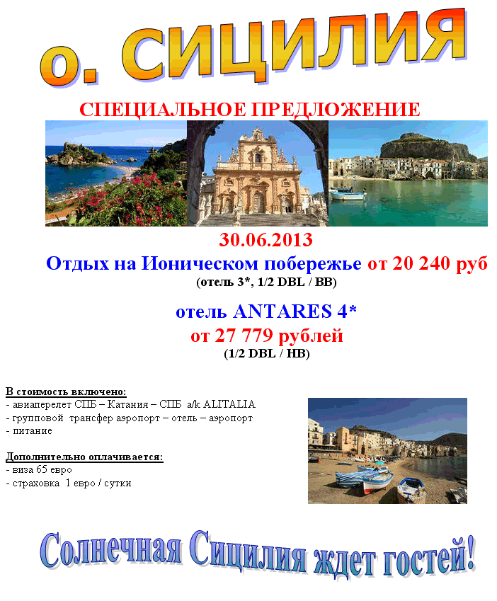 21 Июн 2013 17:50:49 ИТАЛИЯ Сицилия 30.06 от 20 240 руб. от фирмы ФЛАМИНГО