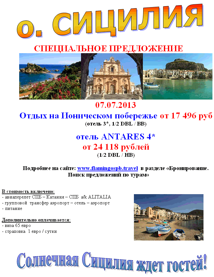26 Июн 2013 17:20:05 ИТАЛИЯ Сицилия 07.07 от 17 496 руб от фирмы ФЛАМИНГО