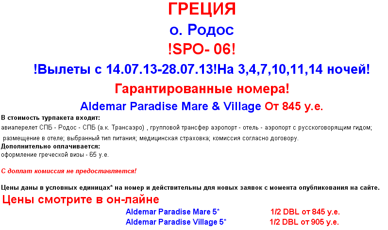27 Июн 2013 10:48:48 ГРЕЦИЯ Родос в Июле, отели Aldemar, гарант. номера от фирмы ЮЖНЫЙ КРЕСТ