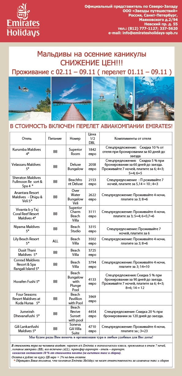 02 Июл 2013 16:23:24 МАЛЬДИВЫ на ноябрьские каникулы от фирмы EMIRATES HOLIDAYS