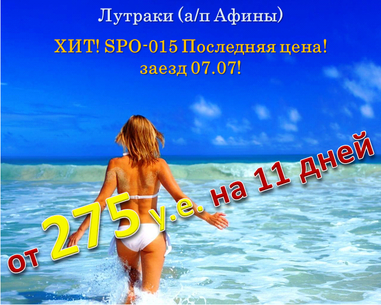 05 Июл 2013 15:18:27 ГРЕЦИЯ Лутраки (а/п Афины) 07.07 на 11д от 275 у.е. от фирмы СОЛВЕКС