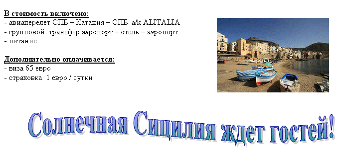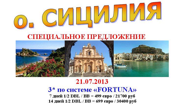 10 Июл 2013 15:20:34 ИТАЛИЯ Сицилия 21.07 на 7/14д от 499 евро от фирмы ФЛАМИНГО