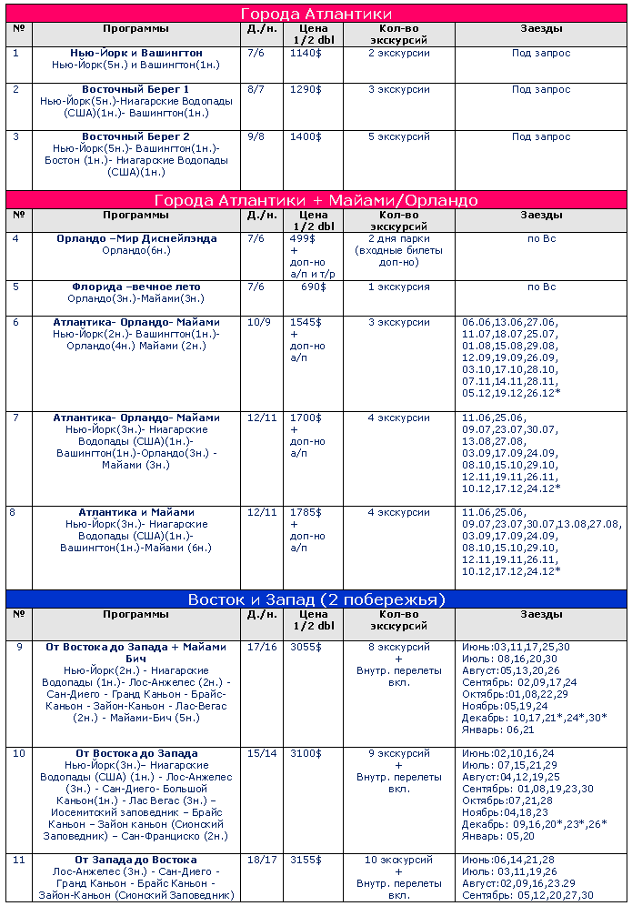 11 Июл 2013 13:05:10 США - экскурсионные туры, сводка от фирмы ПИТЕРТУР