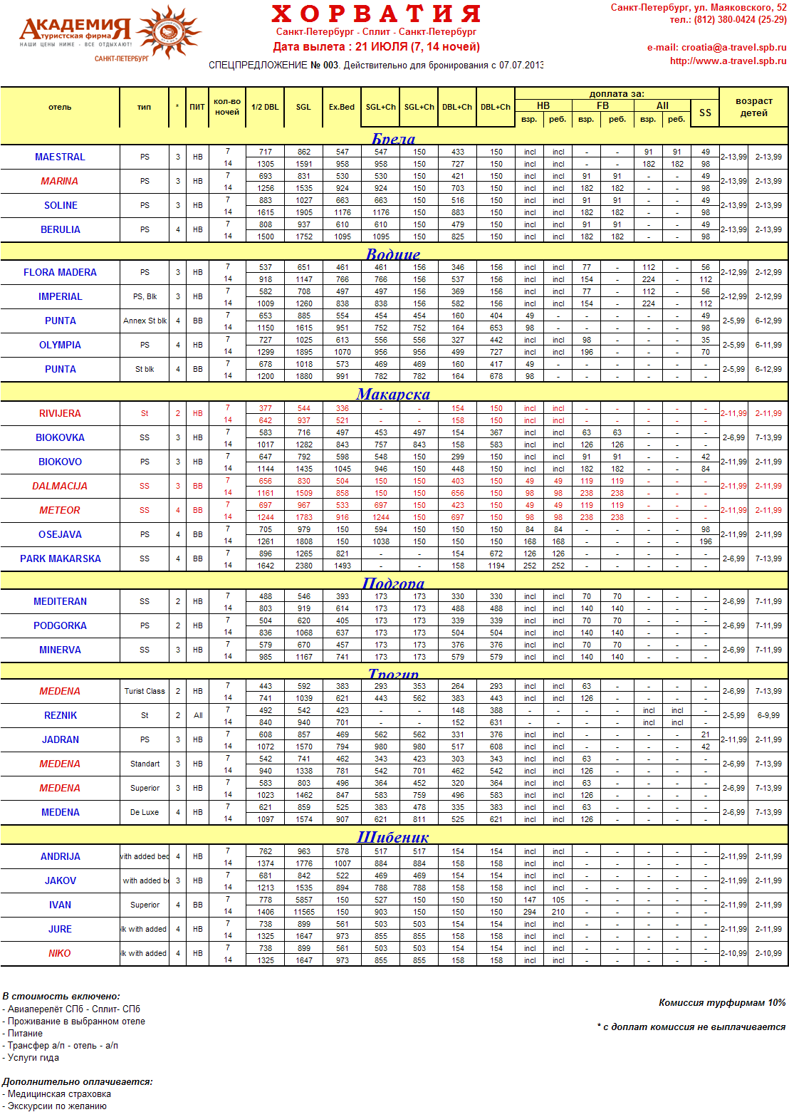 11 Июл 2013 13:54:31 ХОРВАТИЯ 21.07 Средняя Далмация от 380 евро от фирмы АКАДЕМИЯ