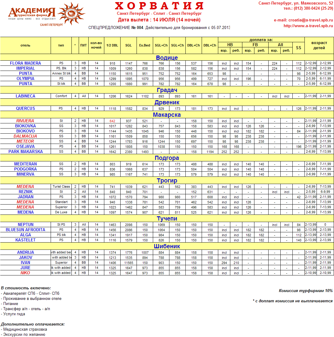 11 Июл 2013 13:57:38 ХОРВАТИЯ 14.07 Отдых в Средней Далмации от 640 евро 2 недели от фирмы АКАДЕМИЯ