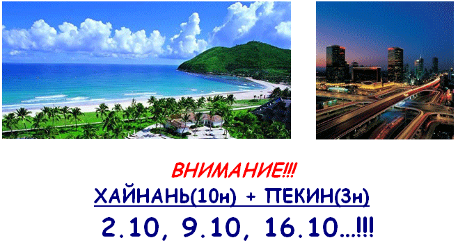 КИТАЙ. ГАРАНТИРОВАННЫЕ ГРУППЫ Хайнань(10н.)+Пекин(3н.) от 44т.р. повышенная комиссия 12% от фирмы ПИТЕРТУР |