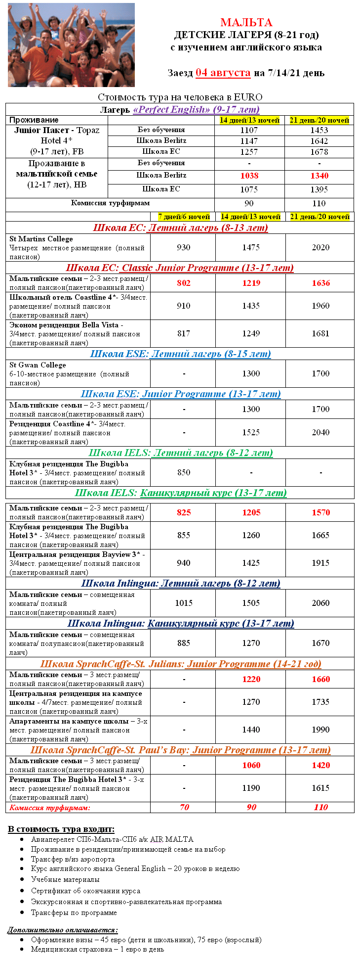 26 Июл 2013 14:33:00 МАЛЬТА 04.08 ДЕТСКИЕ Лагеря с изучением англ. от фирмы ИВОЛГА