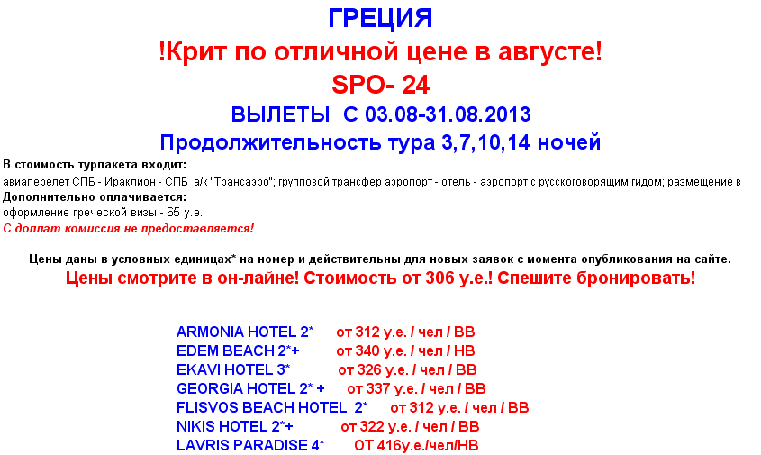 31 Июл 2013 11:20:06 ГРЕЦИЯ Крит в августе от 306 у.е. от фирмы ЮЖНЫЙ КРЕСТ