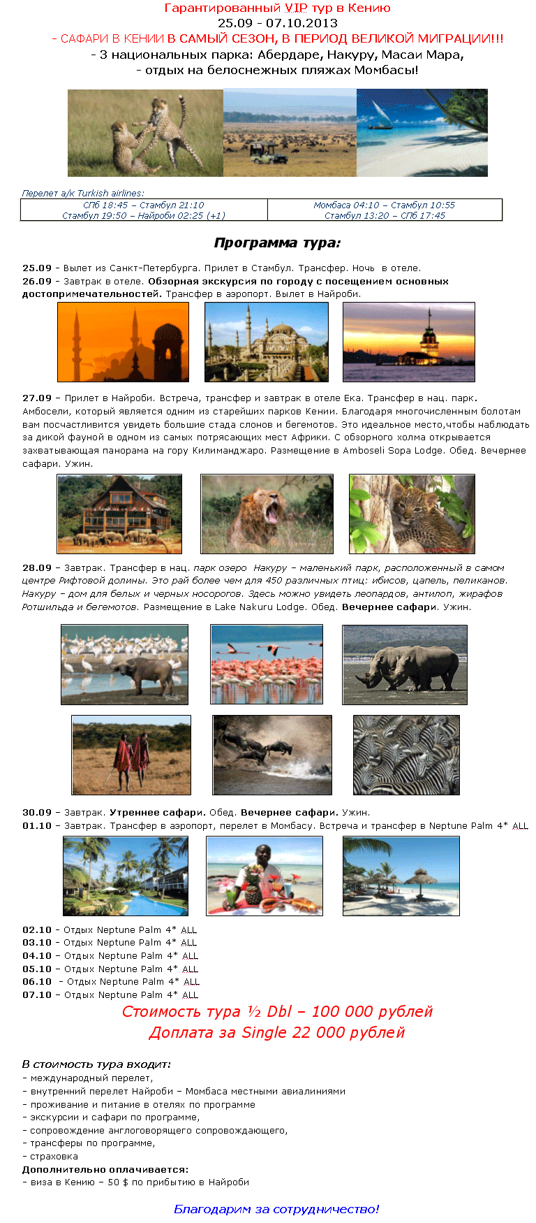 КЕНИЯ 25.09-07.10 Cафари в период "Великой миграции" - гарант. VIP тур за 100 000 руб. от фирмы ПИТЕРТУР |