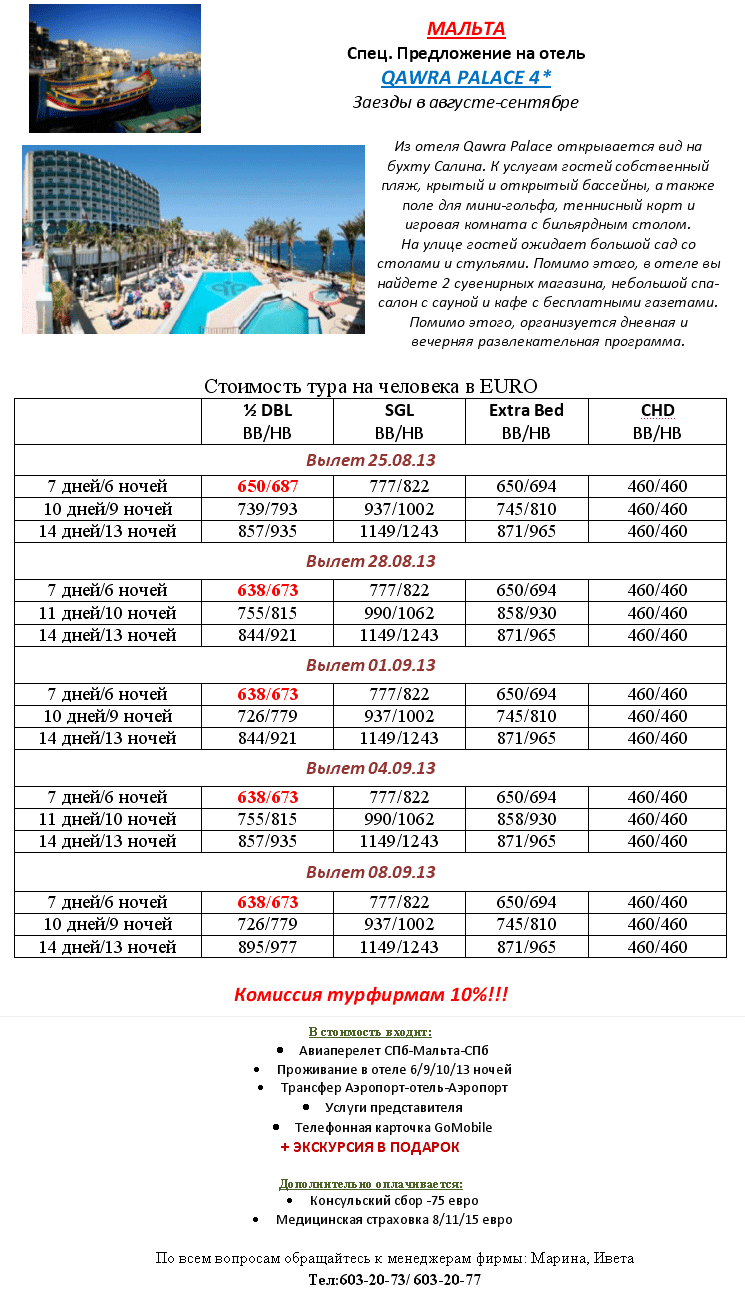 Ждем Ваши заявки на адрес: malta@ivolgatour.ru