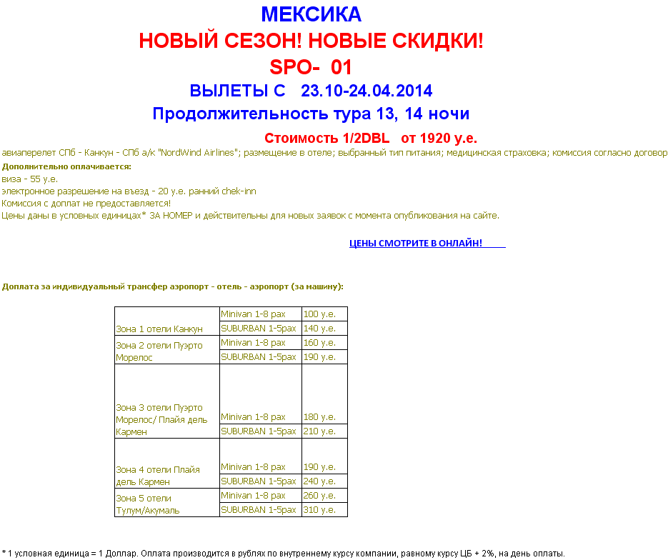16 Авг 2013 12:00:56 МЕКСИКА с 23.10 еженедельно от 1920 у.е. из СПб от фирмы ЮЖНЫЙ КРЕСТ